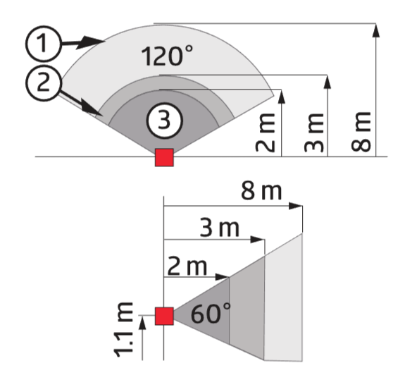 | Зона обнаружения: | горизонтальный 120° (настенный монтаж) |