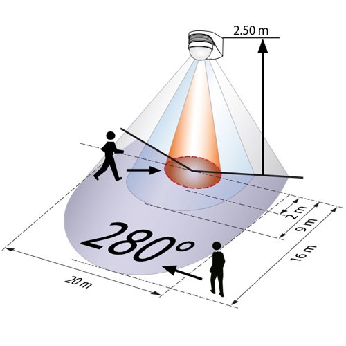 - Уличный датчик движения с диапазоном обнаружения 280°, электронным управлением от микропроцессора, Цвет Белый