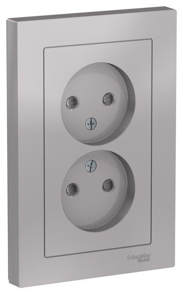 ATN000322 - AtlasDesign РОЗЕТКА двойная без заземления со шторками,16А, в сборе, АЛЮМИНИЙ