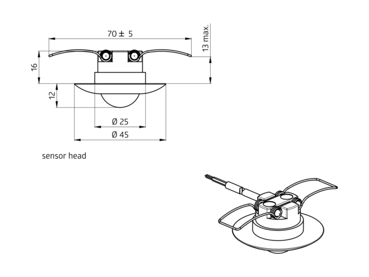 Мини мультисенсор потолочный 360° с LED-индикацией для движения, скрытый монтаж в подвесной потолок, диапазон обнаружения: перпендикулярно - Ø 10 м, фронтально - Ø 6 м, зона присутствия - Ø 4 м; высота монтажа: мин. 2 м / макс. 5 м / рекомендуемая 2,5 м; импульсный выход: 24V DC, 0,5 мА; сетевое напряжение 24 V DC; размеры: Ø 45 x 28 мм, IP20, белый.Характеристики: