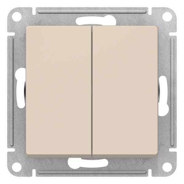 Механизм коллекции AtlasDesign в бежевом исполнении переключателя 2-клавишного Применим для подключения к сетям 250 В с номинальным током 10 А.. - Переключатель позволяют управлять одним источником света с двух точек. - Лицевые панели из качественного ABS-пластика, устойчивого к царапинам и УФ-излучению. - Усиленные прямые монтажные лапки для лучшей фиксации механизма в монтажной коробке.