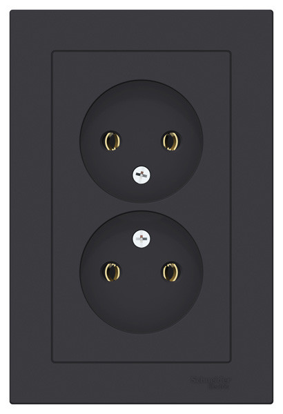 Розетка двойная коллекции AtlasDesign (в сборе, цвет карбон) без заземления и без шторок Подходит для использования в сетях напряжением 250 В с током до 16 А. - Лицевые панели из качественного ABS-пластика, устойчивого к царапинам и УФ-излучению. - Двойная розетка позволяет подключить два устройства в одном месте. - Изделие поставляется в комплекте с рамкой того же цвета. - Благодаря покрытию «soft touch» к изделию приятно прикасаться.