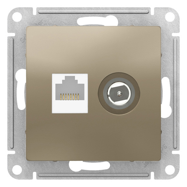 ATN000589 - AtlasDesign РОЗЕТКА двойная комп+ТВ, RJ45+TV, категория 5E, механизм, ШАМПАНЬ
