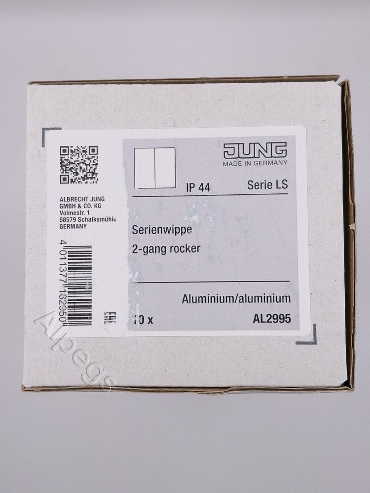 AL2995 Jung Двойная клавиша для балансирных механизмов выключателей (кнопок), в комплекте с CD95HP (крепежный элемент), возможно IP44, металл, алюминий, Aluminium