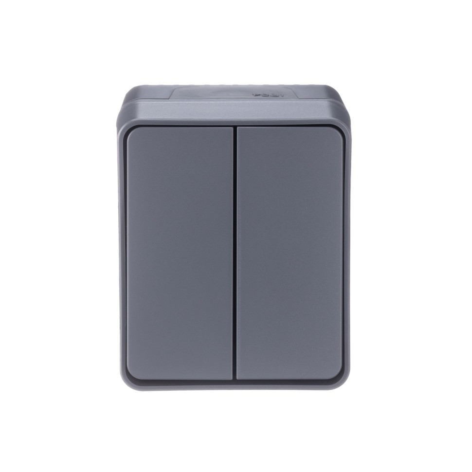 Выключатель 2-клавишный для открытого монтажа. Степень защиты IP:54, Степень защиты IK: IK08. Продукция AtlasDesign Profi54 созданы специально для тех мест, где требуется повышенная защита от влаги и пыли. Уютная веранда в загородном доме, уличное кафе, любимый гараж или мастерская – выключатели и розетки будут обеспечивать надежную защиту и радовать глаз современным дизайном. Элегантный цвет антрацит гармонично впишется в любую обстановку.