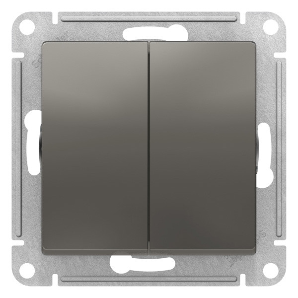Механизм выключателя 2-клавишного коллекции AtlasDesign в исполнении сталь Применим для подключения к сетям 250 В с номинальным током 10 А.. - Двухклавишный выключатель позволяет управлять двумя источниками света с одной точки. - Лицевые панели из качественного ABS-пластика, устойчивого к царапинам и УФ-излучению. - Усиленные прямые монтажные лапки для лучшей фиксации механизма в монтажной коробке.