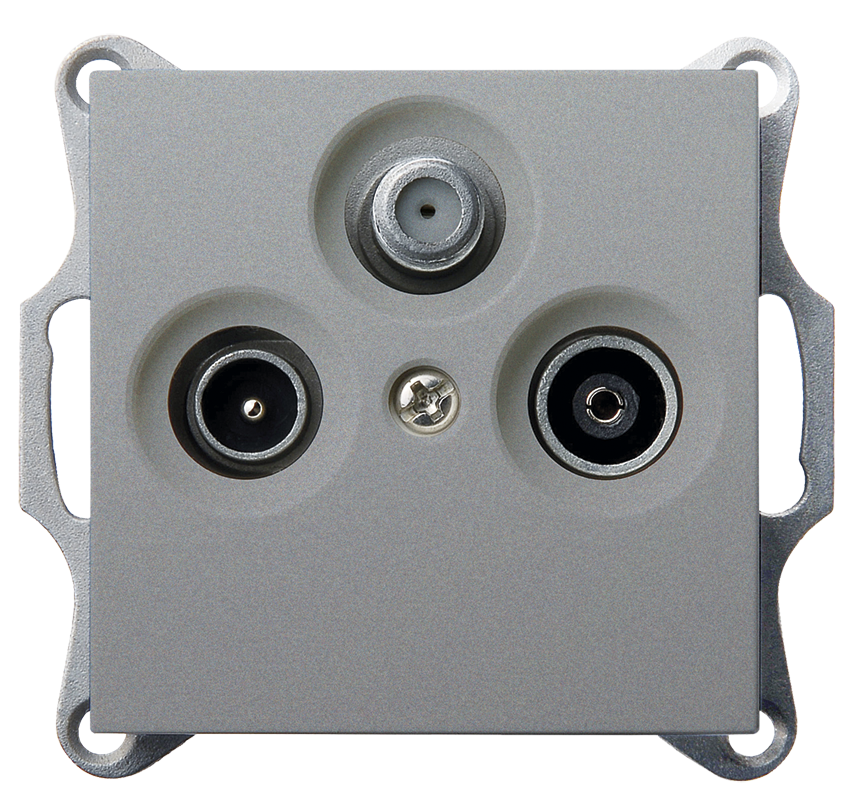 Розетка TV+FM+SAT Ф9.5mm оконечная с накладкой, цвет Алюминий, G6206S, JASMART