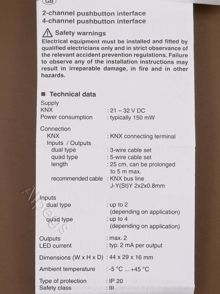 2076-2T KNX/EIB-интерфейс кнопок, двойной