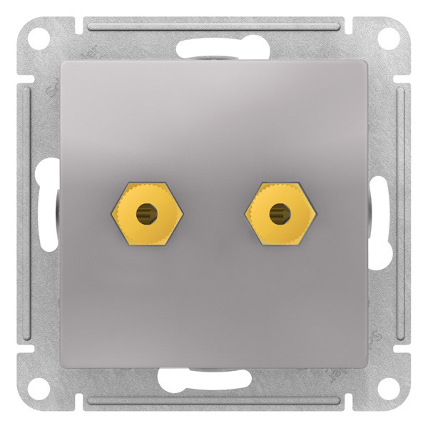 Механизм коллекции AtlasDesign в исполнении алюминий двойной аудиорозетки. - Лицевые панели из качественного ABS-пластика, устойчивого к царапинам и УФ-излучению. - Усиленные прямые монтажные лапки для лучшей фиксации механизма в монтажной коробке.