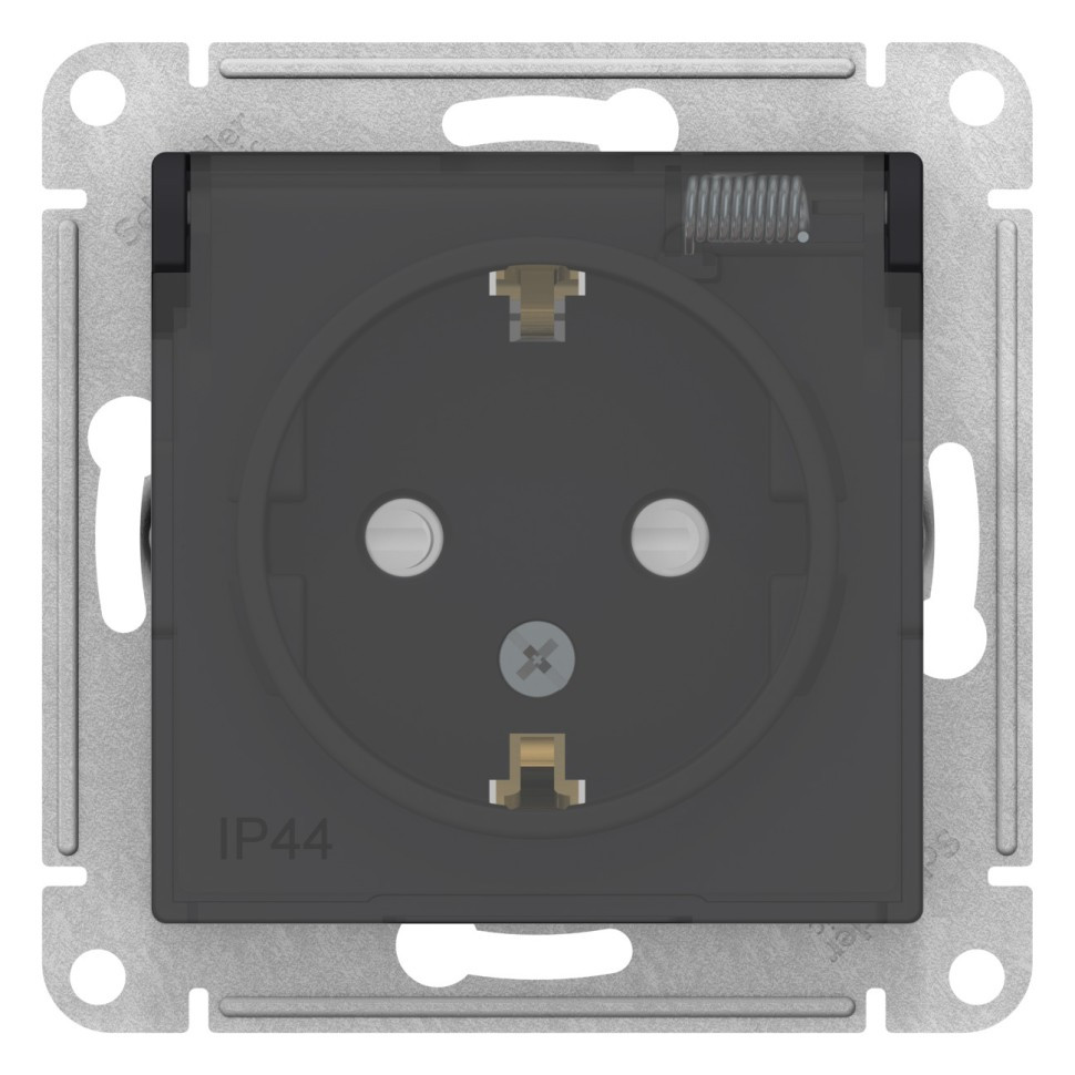 ATN441046 - AtlasDesign AQUA розетка с заземлением со шторк с крышк., 16А, IP44, карбон