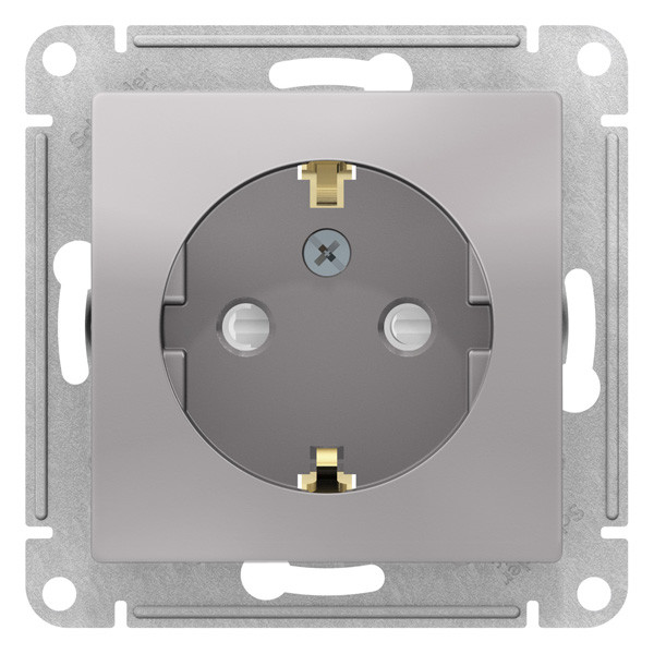 Механизм коллекции AtlasDesign в исполнении алюминий розетки одинарной с заземлением и шторками Подходит для использования в сетях напряжением 250 В с током до 16 А. - Заземляющий контакт обеспечивает дополнительную защиту от удара электрическим током. При наличии заземления электрический потенциал уходит в землю, защищая человека. - Лицевые панели из качественного ABS-пластика, устойчивого к царапинам и УФ-излучению. - Усиленные прямые монтажные лапки для лучшей фиксации механизма в монтажной коробке.