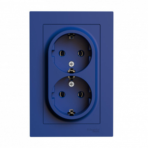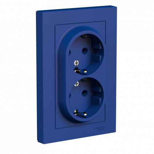 Розетка двойная коллекции AtlasDesign (в сборе, цвет аквамарин) с заземлением, без шторок Подходит для использования в сетях напряжением 250 В с током до 16 А. - Заземляющий контакт обеспечивает дополнительную защиту от удара электрическим током. - Лицевые панели из качественного ABS-пластика, устойчивого к царапинам и УФ-излучению. - Двойная розетка позволяет подключить два устройства в одном месте. - Изделие поставляется в комплекте с рамкой того же цвета.