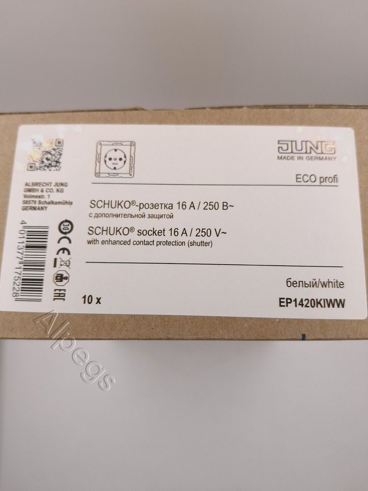 EP1420KIWW Jung Розетка SCHUKO с защитой от детей, термопласт, белый