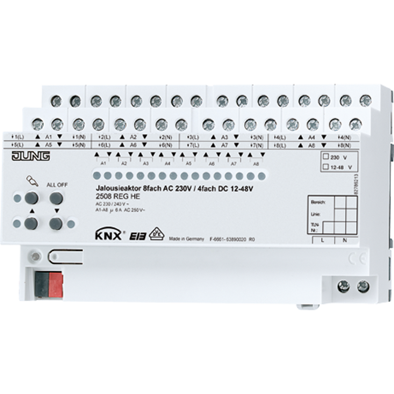 Актуатор жалюзи, 8 каналов ~ 230 V, 4 канала = 12 –48 V