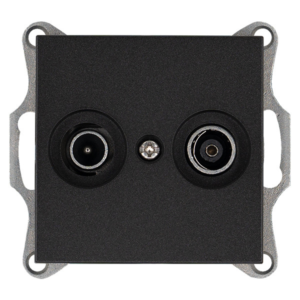 Розетка TV+FM Ф9.5mm проходная с накладкой, цвет Антрацит, G6205B, JASMART