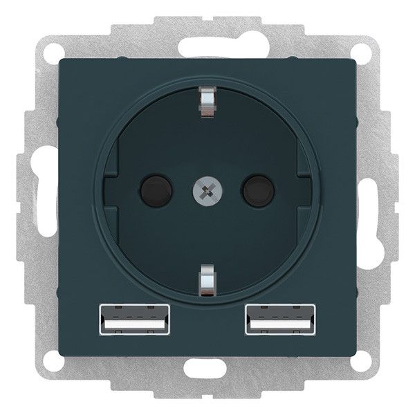 Розетка силовая коллекции AtlasDesign 16А (цвет изумруд) с заземлением и шторками с розеткой USB, с друмя разъемами типа А. - Лицевые панели из качественного ABS-пластика, устойчивого к царапинам и УФ-излучению. - Заземляющий контакт обеспечивает дополнительную защиту от удара электрическим током. - Шторки обеспечивают дополнительную безопасность в доме, где находятся дети. - Одно устройство позволяет как подключить бытовые приборы, так и зарядить мобильные устройства.