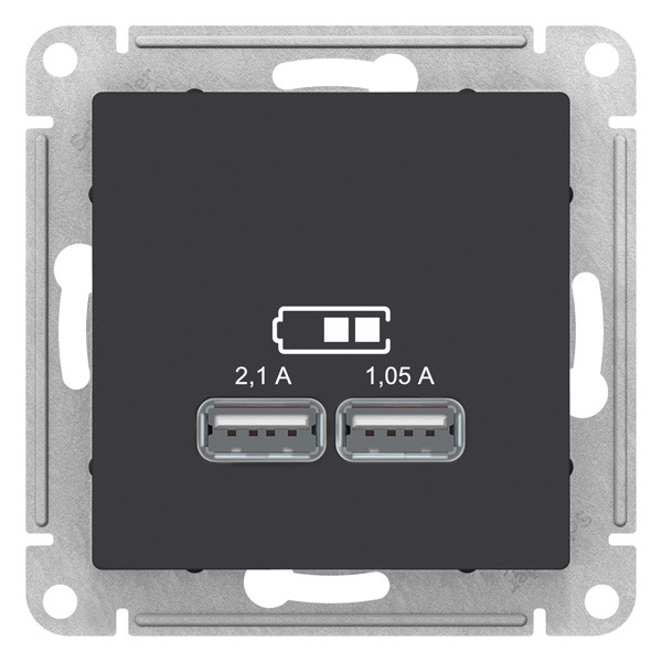 ATN001033 - AtlasDesign USB РОЗЕТКА, 5В, 1 порт x 2,1 А, 2 порта х 1,05 А, механизм, КАРБОН