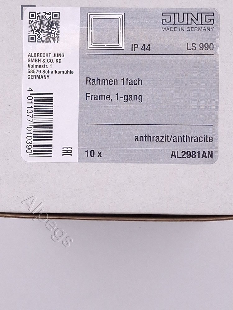 AL2981AN Jung Рамка для вертикальной и горизонтальной установки, 1 пост, металл, антрацит, Aluminium