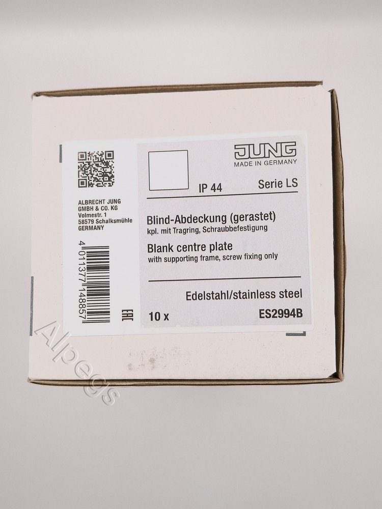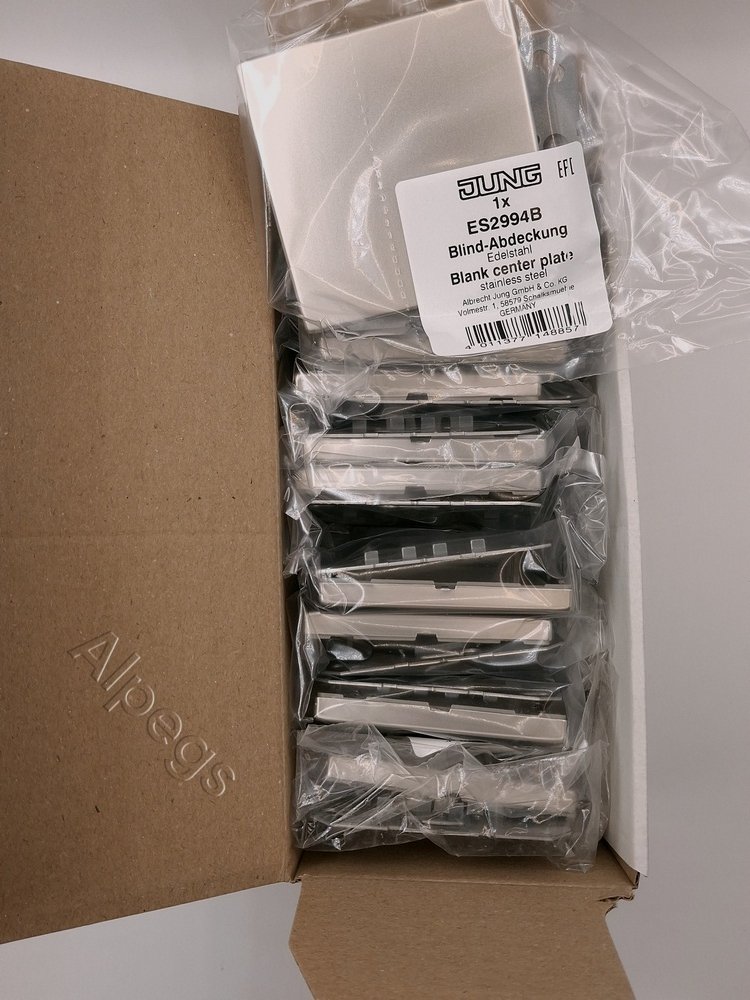 ES2994B Jung Крышка без отверстий, фиксация защёлкиванием, для произвольных вырезов (либо использование в качестве заглушки), возможно IP44, металл, нержавеющая сталь, Edelstahl