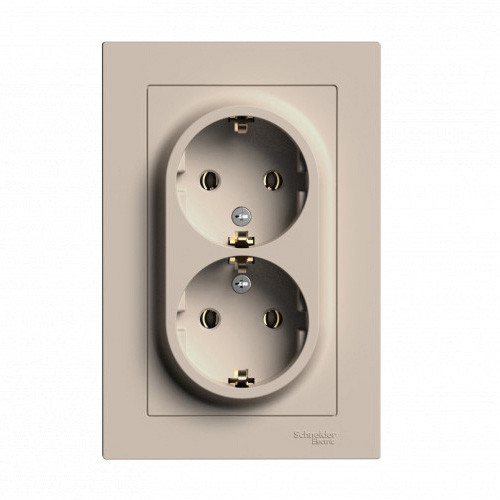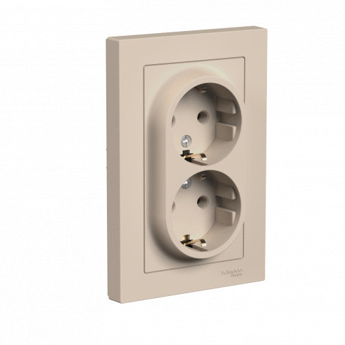 Розетка двойная коллекции AtlasDesign (в сборе, цвет ПЕСОЧНЫЙ) с заземлением, без шторок Подходит для использования в сетях напряжением 250 В с током до 16 А. - Заземляющий контакт обеспечивает дополнительную защиту от удара электрическим током. - Лицевые панели из качественного ABS-пластика, устойчивого к царапинам и УФ-излучению. - Двойная розетка позволяет подключить два устройства в одном месте. - Изделие поставляется в комплекте с рамкой того же цвета.