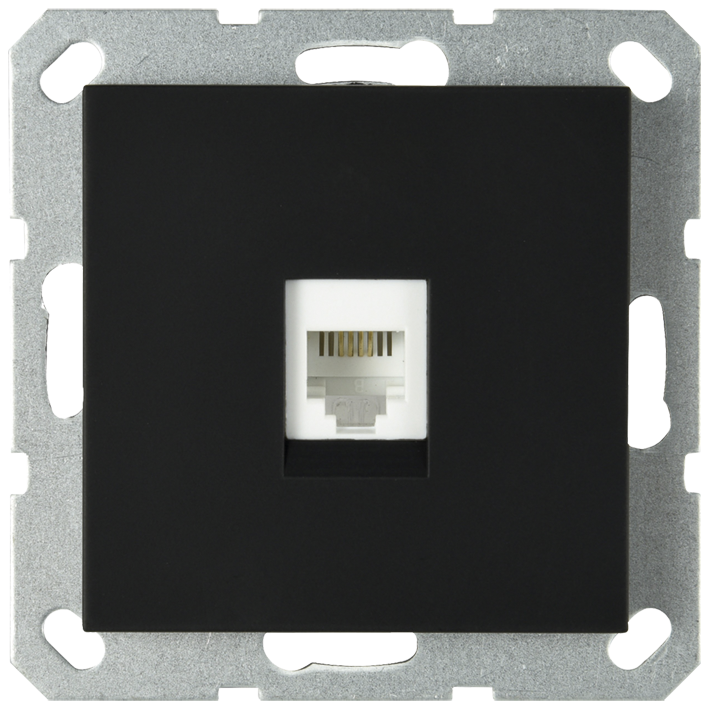 Телефонная розетка RJ11 с накладкой, цвет черный матовый (soft touch), G6101PB, JASMART