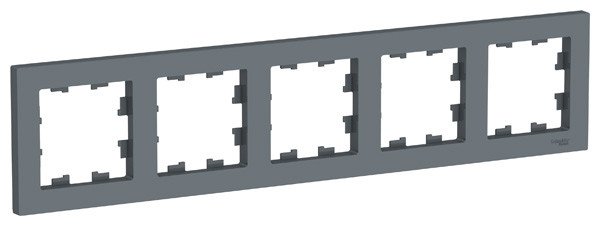 Рамка коллекции AtlasDesign в исполнении грифель пятиместная. - Можно устанавливать как вертикально, так и горизонтально. - Лицевые панели из качественного ABS-пластика, устойчивого к царапинам и УФ-излучению. - Позволяет гармонично вписать электроустановочное изделие в интерьер помещения.