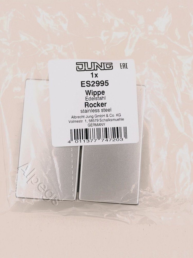 ES2995 Jung Двойная клавиша для балансирных механизмов выключателей (кнопок), в комплекте с CD95HP (крепежный элемент), возможно IP44, металл, нержавеющая сталь, Edelstahl