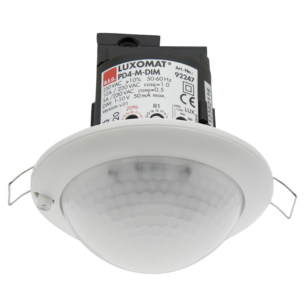 • Детектор присутствия с большим радиусом действия для управления освещением в зависимости от дневного света