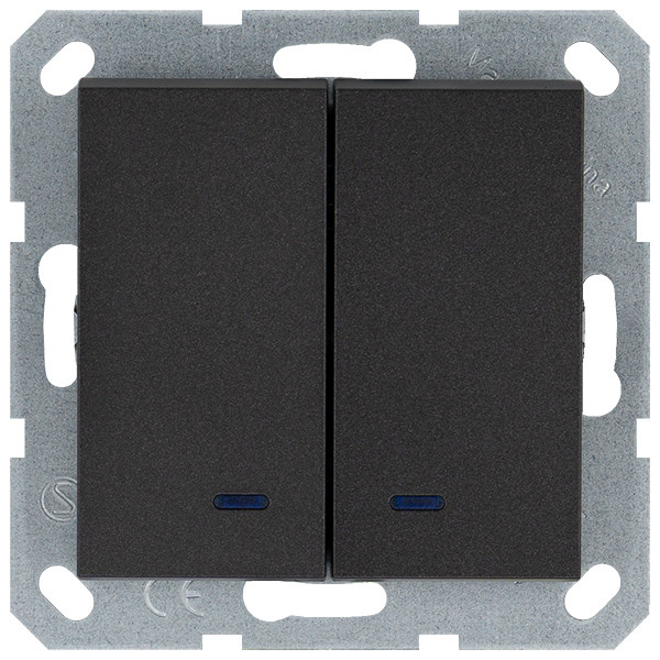 Выключатель двухклавишный со светодиодами 10A 250V~ с накладкой, цвет Антрацит, G3023NB, JASMART