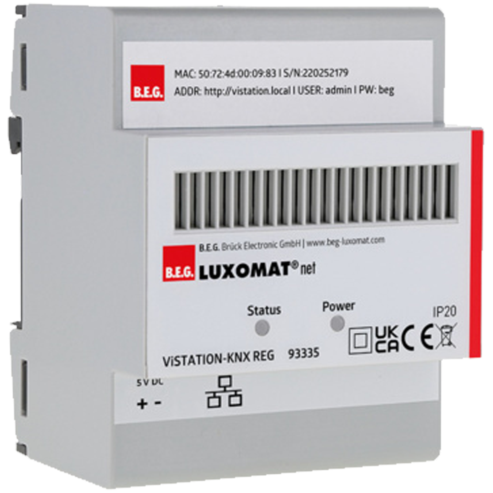 Виртуальная интерфейсная станция - Визуализация и удаленный сервер для систем KNX Пластиковый корпус, 4 блока ширины (DIN-рейка, цилиндр) 1 Подключение по Ethernet/локальной сети 2D-план этажа и / или вид плитки с данными, специфичными для заказчика Централизованная визуализация данных об освещенности, заполняемости и ошибках Возможно ручное управление отдельными зонами освещения Возможно ручное управление с помощью функции сцены Управление пользователями и правами для индивидуального управления конкретными помещениями Может управляться через совместимый веб-браузер на любом пользовательском устройстве (смартфон, планшет, ПК). Включая отдельно прилагаемый источник питания 5 В постоянного тока/2 А для монтажа на DIN-рейку (~ 18 мм) Административный доступ, предварительно настроенный для администрирования пользователя Еженедельный таймер Астропрограмма, например, для событий восхода или захода солнца