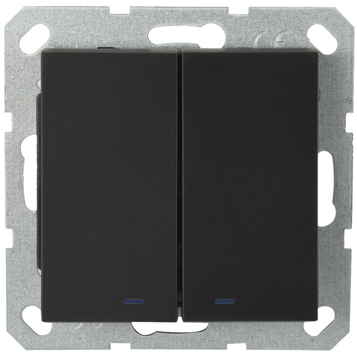 Выключатель двухклавишный со светодиодами 10A 250V~ с накладкой, цвет черный матовый (soft touch), G3023NPB, JASMART