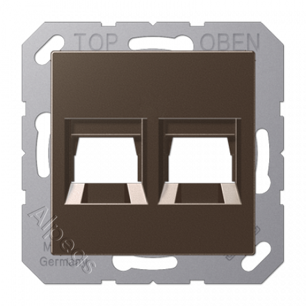 A1569-2WEMO Jung Kрышка для 2-х разъемов, без видимого винта, подпружиненная шторка, термопласт, мокка