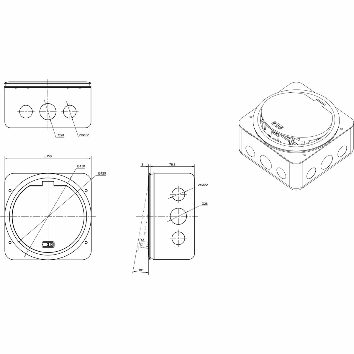 Диаметр монтажный (встраив.): 130 мм