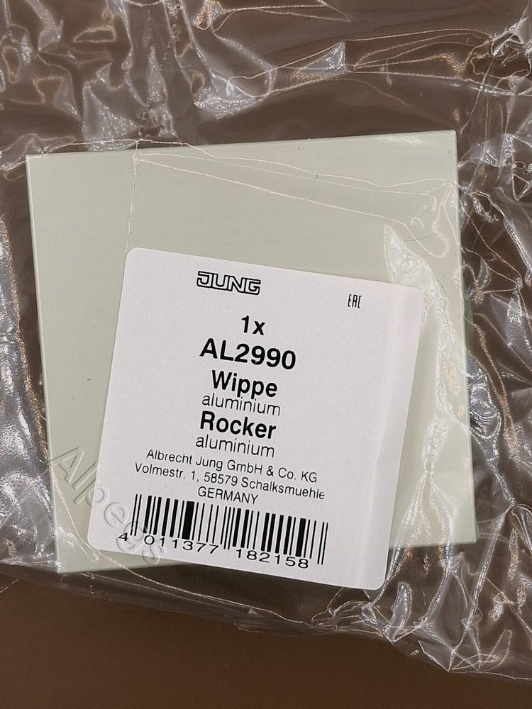 AL2990 Jung Одинарная клавиша для балансирных механизмов выключателей (кнопок), в комплекте с CD90HP (крепежный элемент), возможно IP44, металл, алюминий, Aluminium