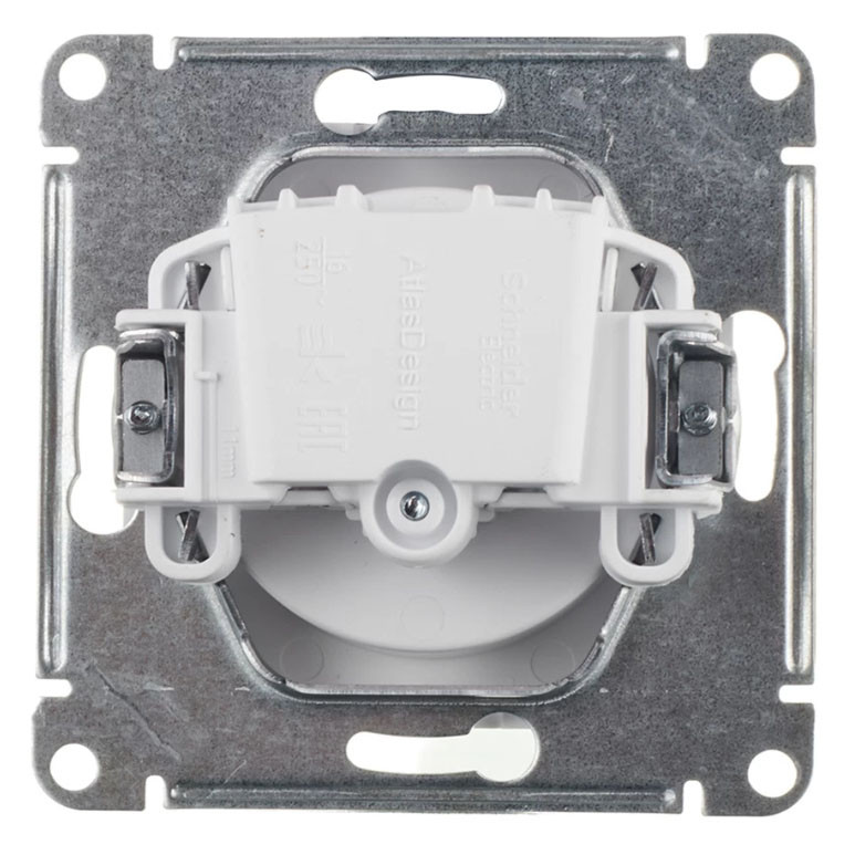 Механизм коллекции AtlasDesign в исполнении сталь розетки одинарной без заземления и без шторок Подходит для использования в сетях напряжением 250 В с током до 16 А. - Лицевые панели из качественного ABS-пластика, устойчивого к царапинам и УФ-излучению. - Усиленные прямые монтажные лапки для лучшей фиксации механизма в монтажной коробке.