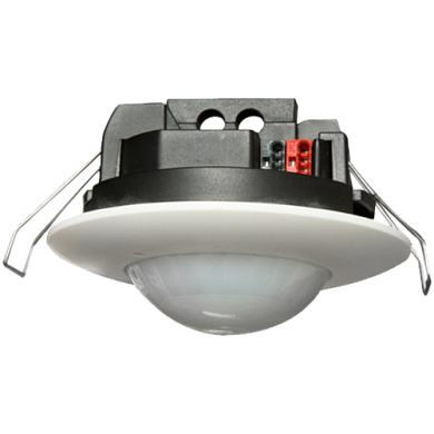 Мини датчик присутствия KNXs потолочный 360° версии Standart с сенсором температуры, скрытый монтаж в подвесной потолок, диапазон обнаружения: перпендикулярно - Ø 10 м, фронтально - Ø 6 м, зона присутствия - Ø 4 м; высота монтажа: мин. 2 м / макс. 5 м / рекомендуемая 2,5 м; выходы: 1 х освещение (для диммирования или переключения), 1 х slave, 3 х HVAC; сетевое напряжение по шине KNX; размеры Ø 33 x 27 мм, IP20, белый.Характеристики: