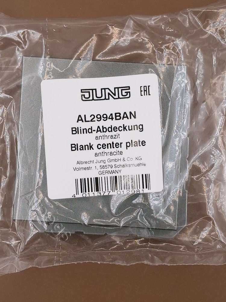 AL2994BAN Jung Крышка без отверстий, фиксация защёлкиванием, для произвольных вырезов (либо использование в качестве заглушки), возможно IP44, металл, антрацит, Aluminium
