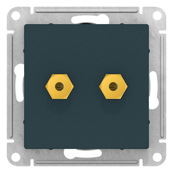 Механизм коллекции AtlasDesign в исполнении изумруд двойной аудиорозетки. - Лицевые панели из качественного ABS-пластика, устойчивого к царапинам и УФ-излучению. - Усиленные прямые монтажные лапки для лучшей фиксации механизма в монтажной коробке.