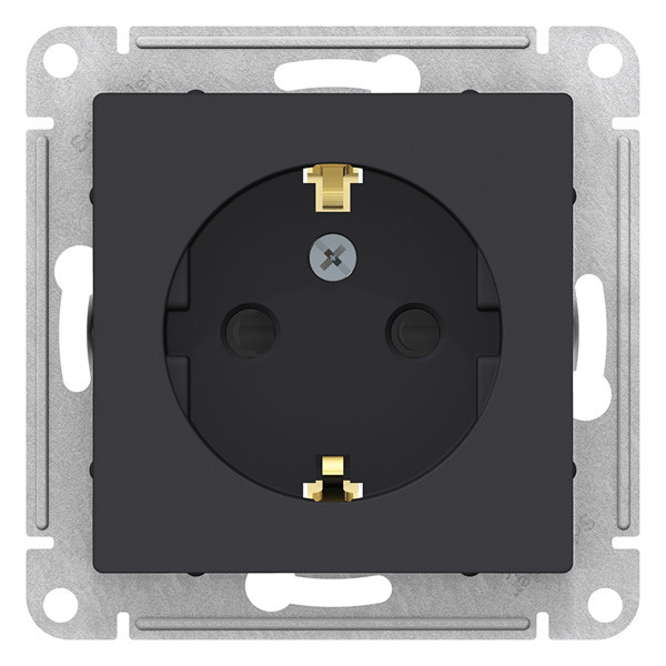 ATN001045 - AtlasDesign РОЗЕТКА с заземлением со шторками, 16А, механизм, КАРБОН