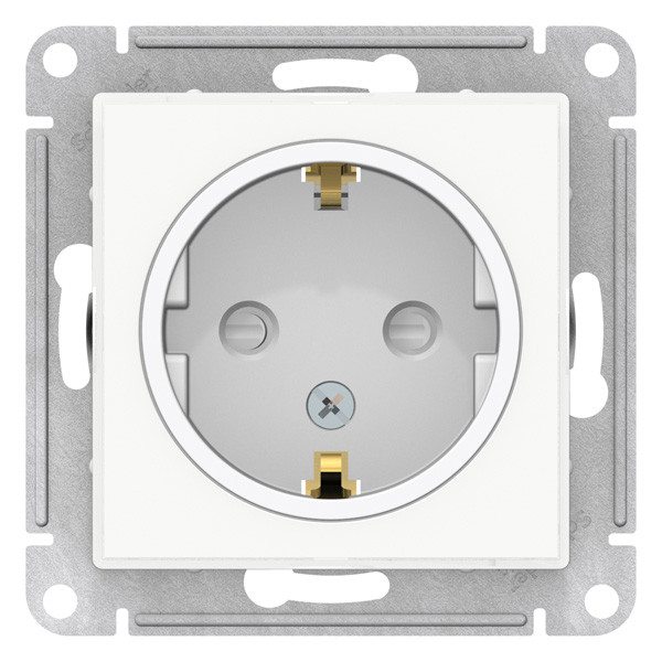 Механизм коллекции AtlasDesign Art (цвет белый) розетки одинарной с заземлением и шторками Подходит для использования в сетях напряжением 250 В с током до 16 А. - Позволяет гармонично вписать электроустановочное изделие в интерьер помещения и создать свой собственный дизайн путем помещения под прозрачную накладку рисунка, фотографии, обоев, ткани и т.д. - Заземляющий контакт обеспечивает дополнительную защиту от удара электрическим током. При наличии заземления электрический потенциал уходит в землю, защищая человека. - Лицевые панели из качественного ABS-пластика, устойчивого к царапинам и УФ-излучению.