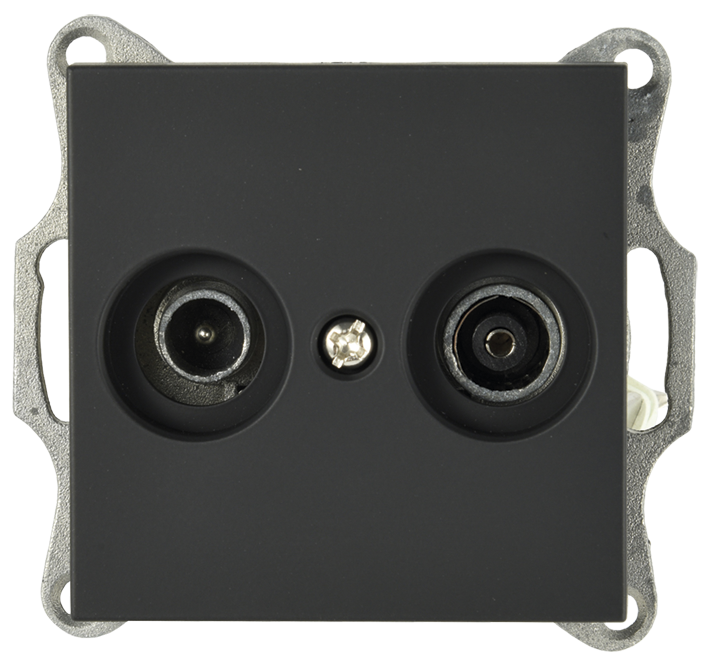 Розетка TV+FM Ф9.5mm оконечная с накладкой, цвет черный матовый (soft touch), G6204PB, JASMART