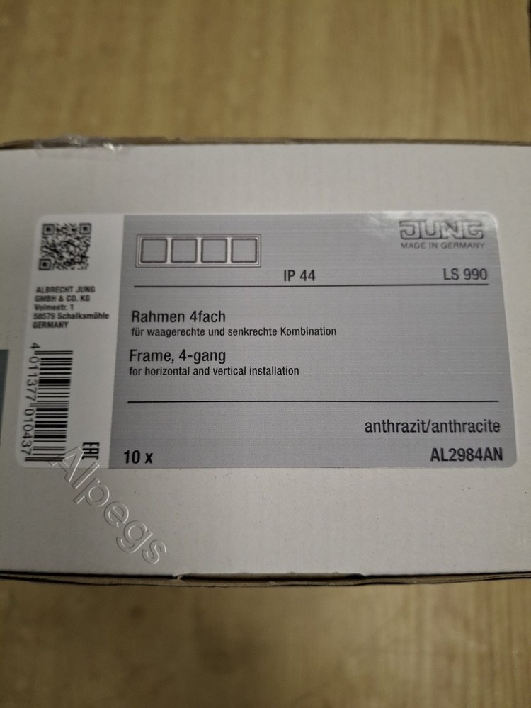 AL2984AN Jung Рамка для вертикальной и горизонтальной установки, 4 поста, металл, антрацит, Aluminium