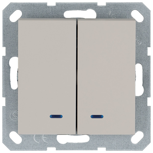 Выключатель двухклавишный со светодиодами 10A 250V~ с накладкой, цвет Тауп, G3023NT, JASMART