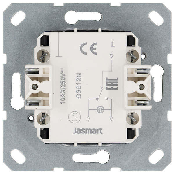 Выключатель одноклавишный проходной со светодиодом 10A 250V~ с накладкой, цвет белый глянцевый, G3012NW, JASMART