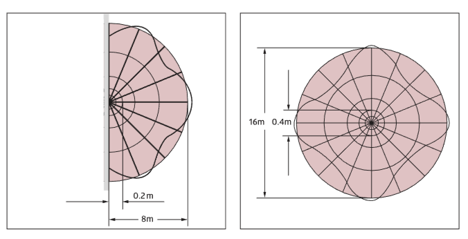 - Угол обнаружения 360° или 160° в зависимости от типа монтажа: на потолке или на стене