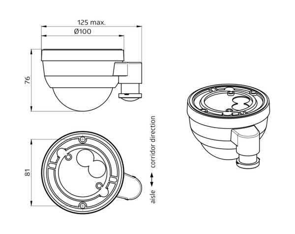 Мультисенсор DALI-2 Casambi для высоких потолков, потолочный 360° (овальный), накладной монтаж, телескопический сенсор освещенности, диапазон обнаружения: фронтально - 30 х 19 м; высота монтажа: мин. 5 м / макс. 16 м / рекомендуемая 14 м; настройки: Casambi приложение; канал 1 (управление освещением): выход DALI - макс. 32 ЭПРА; сетевое напряжение 230 V AC ±10% 50 Hz; размеры Ø 101 x 76 мм, IP54, белый.Характеристики: