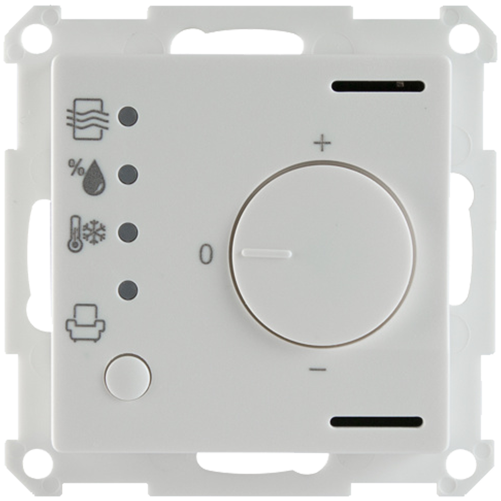 Регулятор температуры и датчик ЛОС (летучих органических соединений) для шины KNX Контроль температуры: PI-контроллер (непрерывный), 2-ступенчатый регулятор %, 2-ступенчатая коммутация, PWM Предустановленные температурные кривые для различных систем отопления / охлаждения Может быть активирована дополнительная ступень нагрева /охлаждения Различные приоритетные режимы работы (Комфорт, режим ожидания, Экологичность, защита от замерзания / перегрева) Продление продолжительности поддержания комфортной температуры с помощью кнопки (зеленый индикатор) Возможно ограничение уставки (температуры) с помощью температуры наружного воздуха Определение точки росы Обратная связь в виде бита, байта или формата RHCC Индикатор нагрева/охлаждения (красный/синий) Контроль качества воздуха: PI-контроллер (непрерывный), 2-ступенчатый регулятор %, 2-ступенчатая коммутация Метод измерения качества воздуха ЛОС, выходящий ЛОС или CO2 Регулирование или сценический режим Контроль влажности воздуха: PI-контроллер (непрерывный), 2-ступенчатый регулятор %, 2-ступенчатое переключение Регулировка управляющих значений с помощью поворотной ручки или объекта Вывод температуры (°C), качества воздуха (ppm) и относительной влажности (%) на шину Индикатор (светофор) качества воздуха и влажности (зеленый, желтый, красный) Четыре предельных значения, каждое для влажности и качества воздуха Подходит для диапазонов переключений 55x55 Адаптер для диапазонов переключений 64x64 входит в комплект поставки Со встроенным шинным соединителем