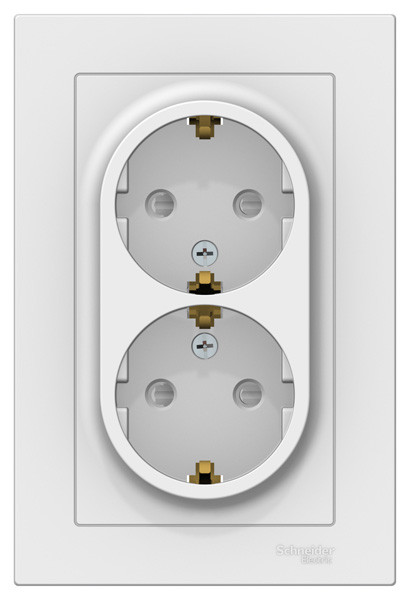 Розетка двойная коллекции AtlasDesign (в сборе, цвет белый) с заземлением и шторками Подходит для использования в сетях напряжением 250 В с током до 16 А. - Пластик с ионами серебра обеспечивает антибактериальный эффект. - Заземляющий контакт обеспечивает дополнительную защиту от удара электрическим током. - Лицевые панели из качественного ABS-пластика, устойчивого к царапинам и УФ-излучению. - Двойная розетка позволяет подключить два устройства в одном месте. - Изделие поставляется в комплекте с рамкой того же цвета.