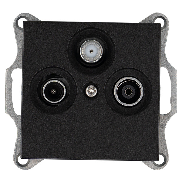Розетка TV+FM+SAT Ф9.5mm оконечная с накладкой, цвет Антрацит, G6206B, JASMART