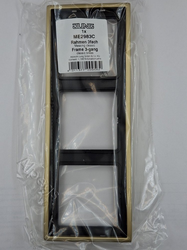 ME2983C Jung Рамка для вертикальной и горизонтальной установки, 3 поста, металл, латунь classic, Messing